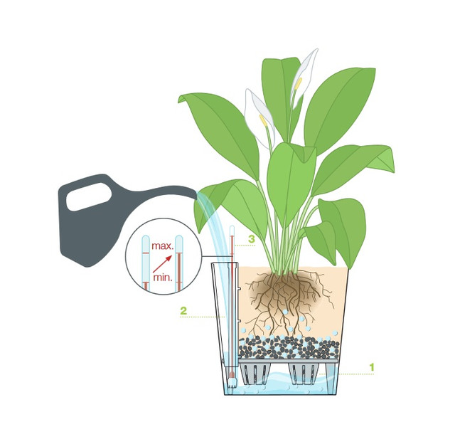 Система автополива LECHUZA снабжает Ваши растения водой по аналогии с природой. Далее мы подробнее представим Вам принцип автополива, используемый в каждом кашпо LECHUZA. Желаем Вам удачи с LECHUZA.