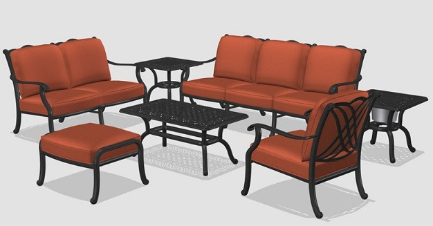 Садовая мебель из металла. Диваны на 2 и на 3 персоны, кресла и журнальные столики, скамейки, обеденные столы на 4, 6 и 8 персон. Цвет металла - темная бронза.