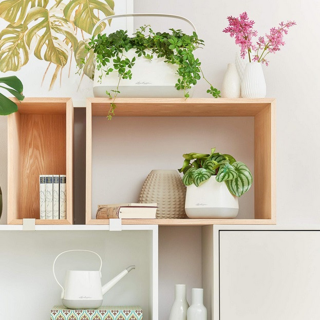 С гармоничными пастельными тонами, матовыми поверхностями и чистыми формами коллекция YULA может быть размещена в любом интерьере. Небольшие апартаменты могут быть легко украшены кашпо, вазой и другими предметами YULA. Купленные растения даже не нужно пересаживать. Они могут оставаться в своем горшке и помещены в кашпо для растений или макраме. Система автополива обеспечивает оптимальную подачу воды к корням в течение определенного периода времени. Это означает, что ручной полив больше не нужен, и ничто не препятствует поездке в отпуск или командировку, которая длится несколько дней. Просто заполните резервуар для воды, и растения будут снабжаться влагой себя в течение нескольких дней.